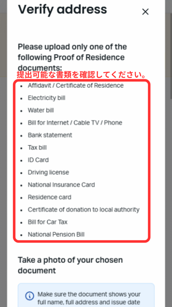 ㊱提出可能な住所証明書類を確認してください。