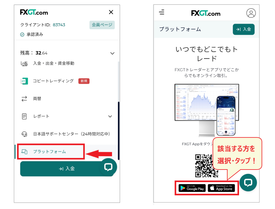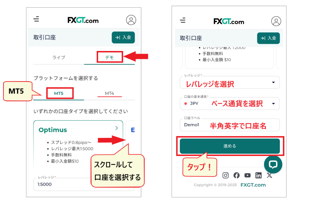 FXGTデモ口座でMT4/MT5をダウンロード(スマホ版)