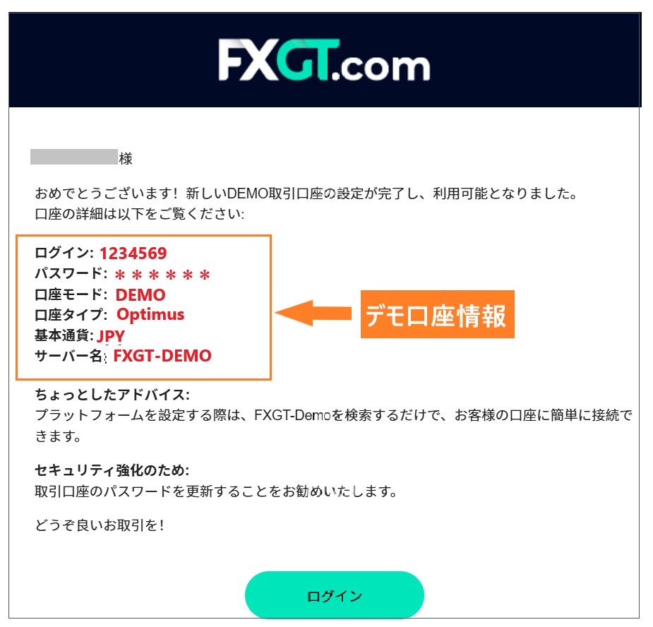 デモ口座の申請が完了すると、「新しい取引口座が利用可能になりました」というメールが届きます。
