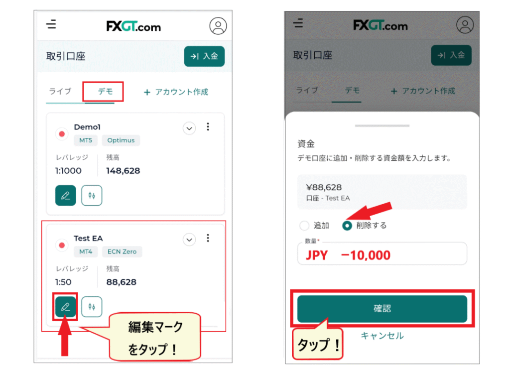FXGTデモ口座 残高リセットのやり方(削除・追加)