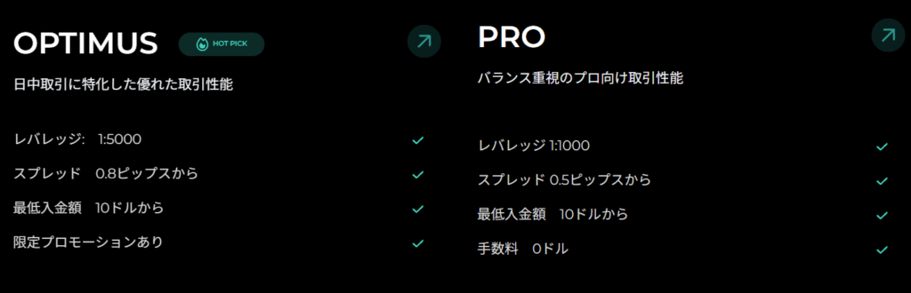 | 比較項目 | Optimus | Pro | ECN Zero | Standard | Crypto Max | Mini |