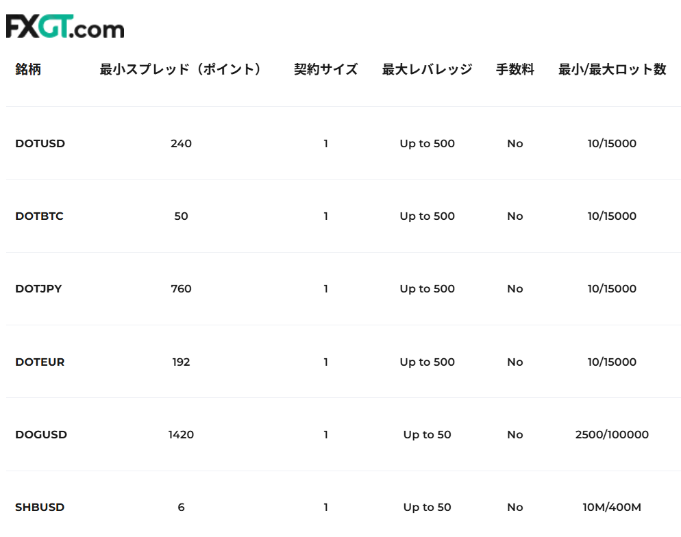 FXGTの特徴をズバリひとことで言うと、「お得なボーナスキャンペーンが多い」「最大レバレッジが5000倍」「豊富な仮想通貨の銘柄」などが挙げられます。