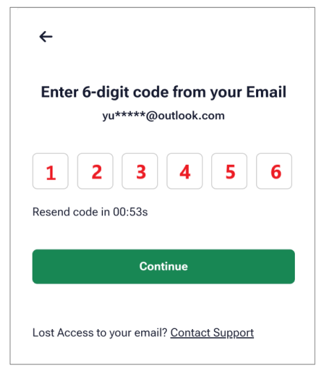 次に、メールで認証コードが届きます。届いた認証コードを入力して、メール認証を行います。