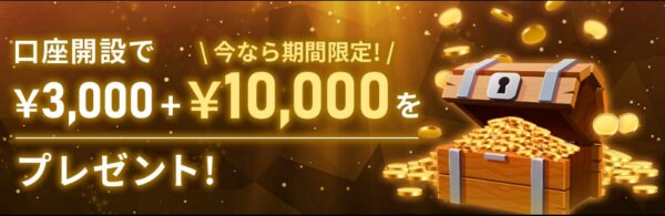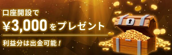 また、口座開設時に3000円分のボーナスを受け取ることができるボーナスキャンペーンもあり、入金なしでいきなり取引を行うことも可能です。※2025年3月3日~2025年3月8日は13,000円の口座開設ボーナス