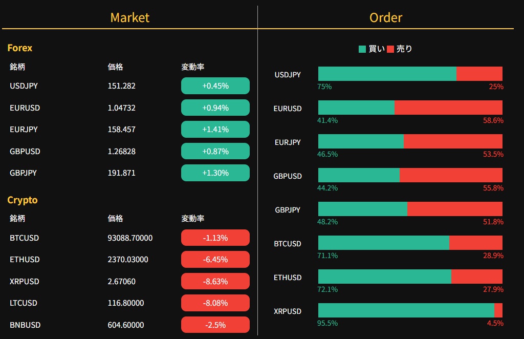IS6FXでは売り買いどちらの注文が多いかホーム画面で確認できます。