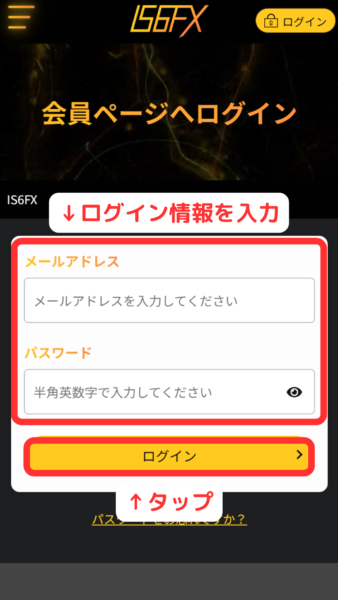 ①下記のリンクからIS6FXのマイページログイン画面に移動します。