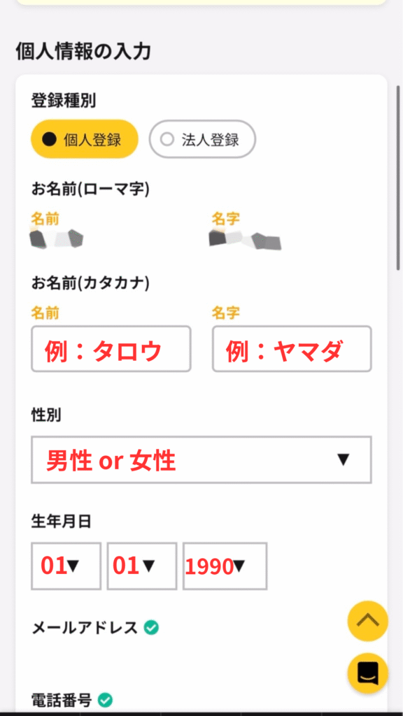 IS6FX(アイエスシックスエフエックス)へ登録する情報を登録フォームへ入力し終えたら、