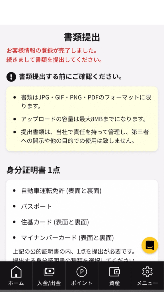 「ファイルを選択」をタップして住所確認書類をアップロードしてください。