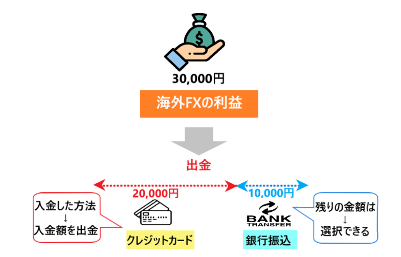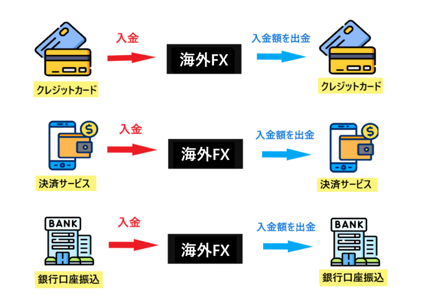 海外FXでは、入金時と同じ手段で出金することが基本ルールとなっています。