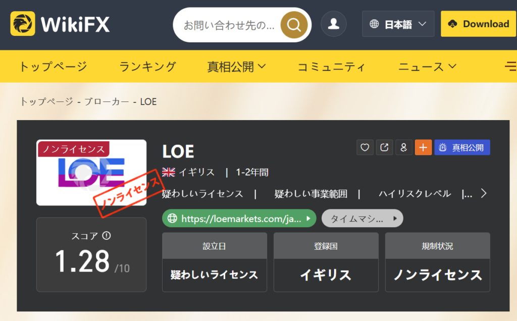出典:WikiFX|【金融庁が警告】海外FX業者「LOE」は無登録の危険業者!出金できない被害が続出中