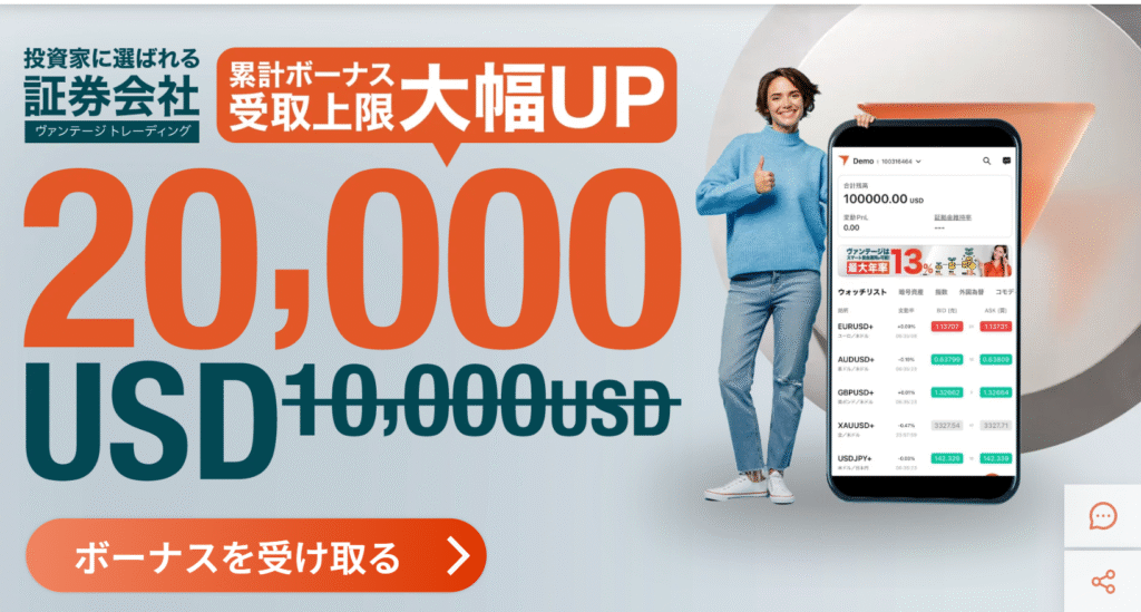 海外FXボーナスおすすめ1位:【Vantage Trading】