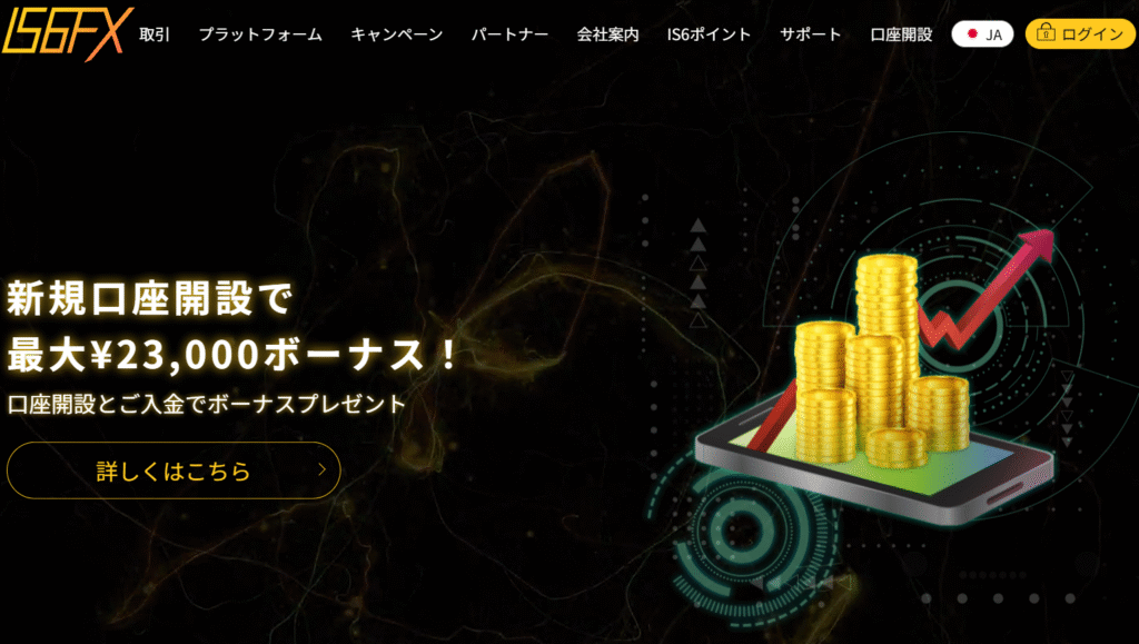 - 入金ボーナス9位:【IS6FX】2万円の入金で1万円!