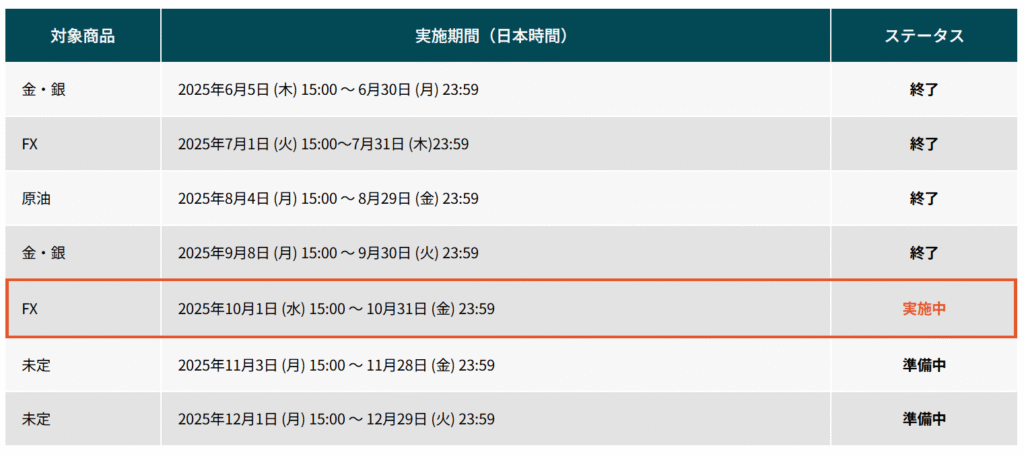 2025年11月現在、VantageTradingで実施中のボーナスは以下のとおり。