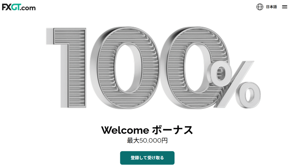 2025年11月現在、FXGTで実施中のボーナスは以下のとおりです。受け取れるボーナスは、口座の種類のよって内容が変わってきます。