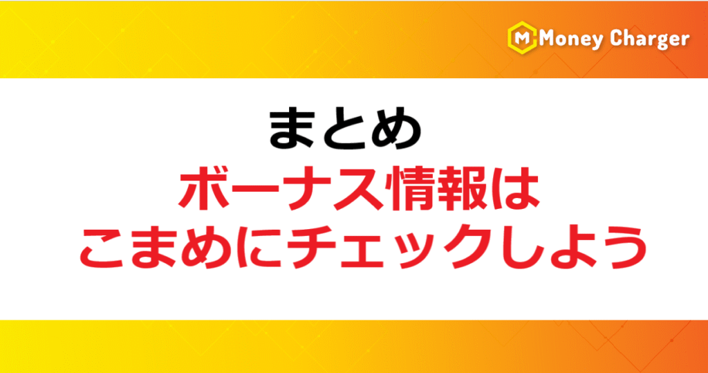 なお、ボーナスの注意点は記事にある通りです。注意点をよく理解したうえで、ボーナスをうまく活用していきましょう。