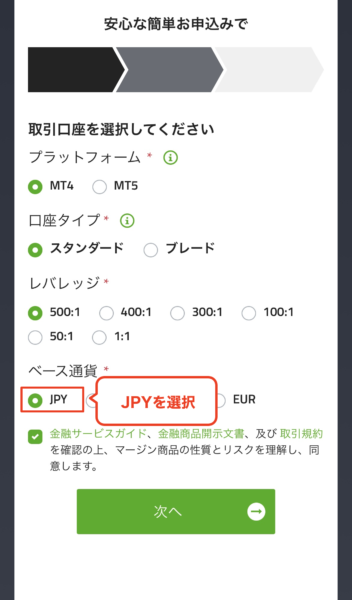 - こだわりがなければ、「JPY(日本円)」を選択しましょう