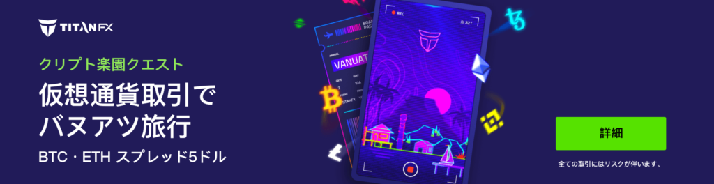 Titan FXでは、インドア派もアウトドア派も満足できる特典をご用意したクリプト楽園クエストキャンペーンを実施いたします。